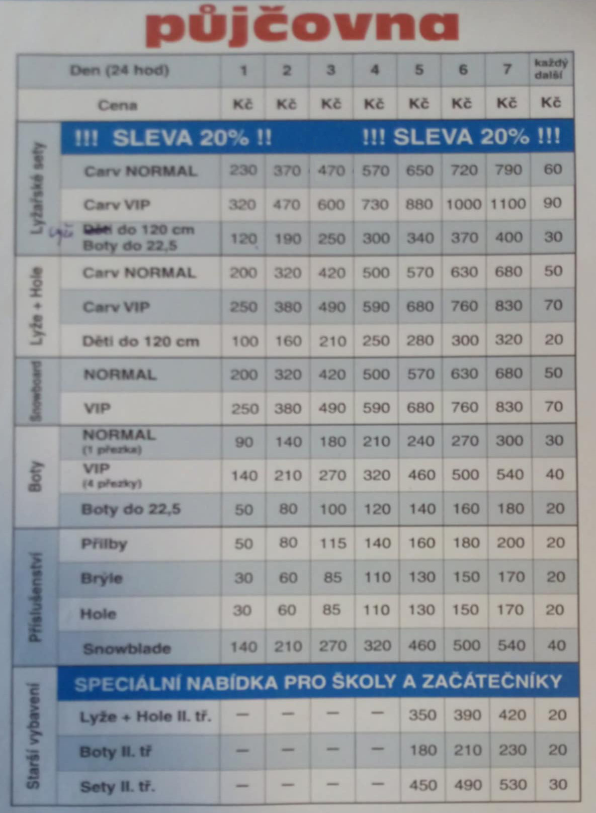 školní sety: 1000 Kč + platný osobní doklad